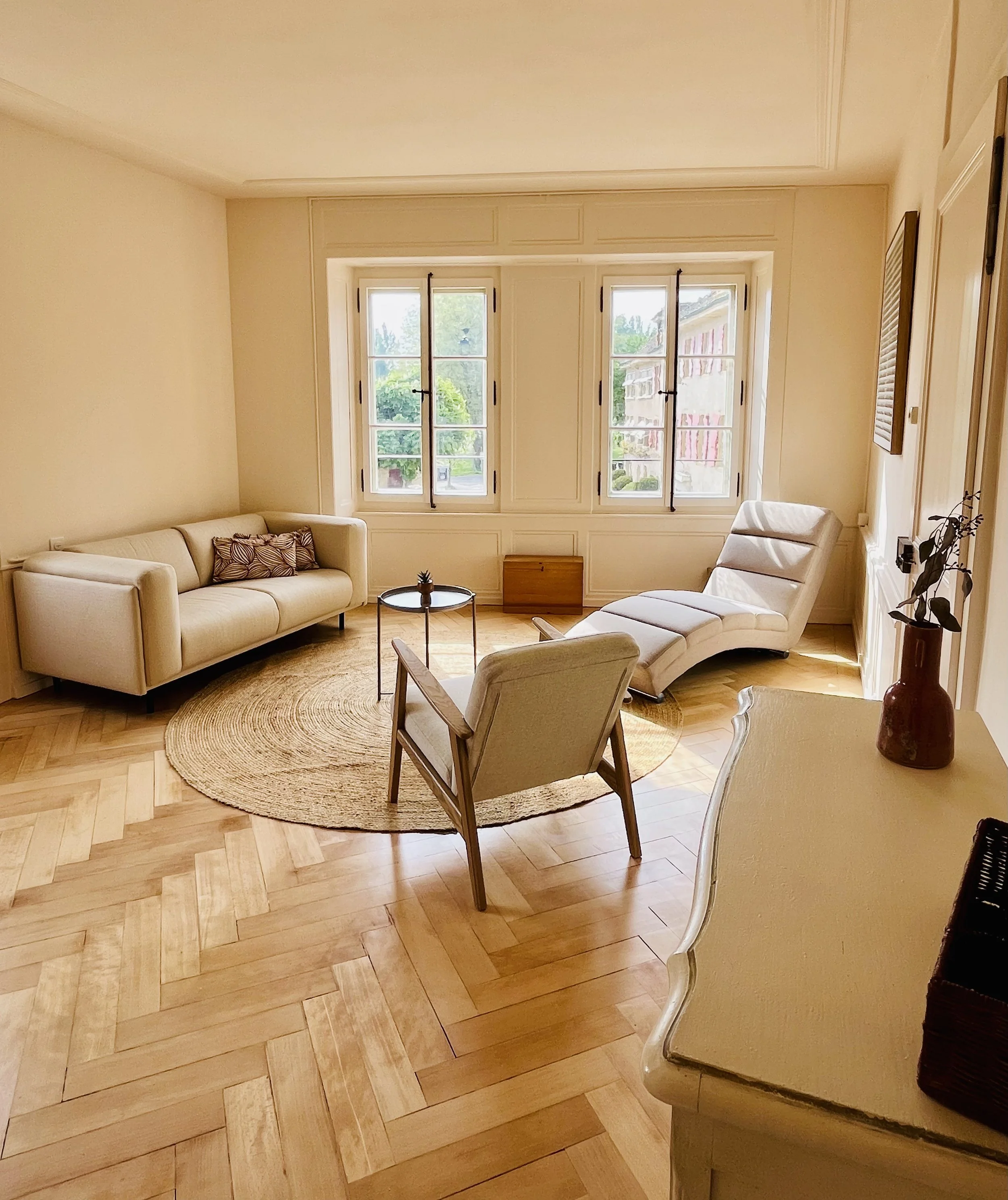 Un espace lumineux, calme et soigneusement aménagé, propice à la présence et à la confiance